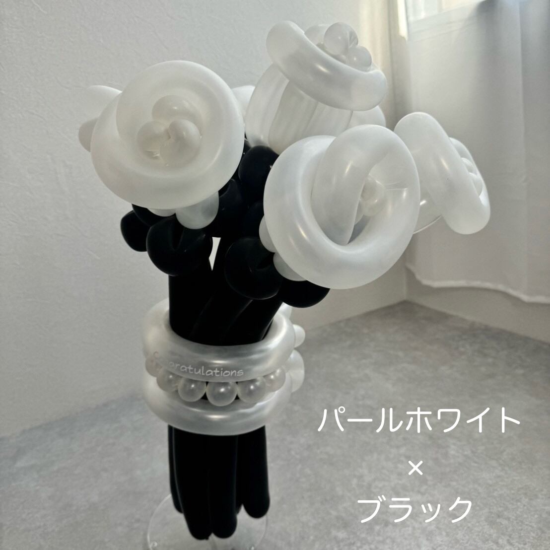 お花をまとめる結び方は、バルーンを3本使った3連と、リボンの2種からお選びいただけます。