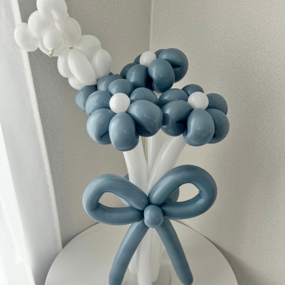 お花をまとめる結び方は、バルーン3本を使った3連と、リボンの2種からお選びいただけます。